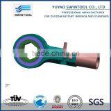 Manufacturer of Custom wrenches and ratchet handle, it is designed by ourselves for industrial original equipment manufacturers and plant operation, Ratchet crank handle is in blot-through design and shapes in square, hexagon or bore opening shapes and special shapes are available. Ratchet arm types in folding handle, extended handle by locking pin, forged handle with rubber, bend shape etc. Just let us know your application, the functions and features desired, we will design by 3D software(UG, solid-works etc) for you a solution! Quality custom wrench ratchet handle is made in the China.