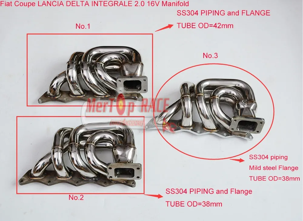 Mertop Race SS304 T3 Piping OD=42mm TURBO FLANGE COLLETTORE DI SCARICO MANIFOLD FOR LANCIA DELTA INTEGRALE 2.0 16V Fiat