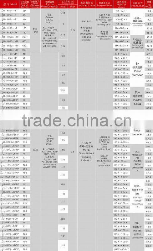 ZU-H, QU-H series filters are installed on pressure pipeline of the hydraulic system, there