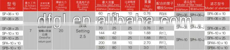 China Supplier SP-06X10B SP Return Filter