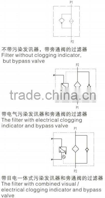 lower housing. This filter is with check valve, by-pass valve and clogging indicator, when filter element is
