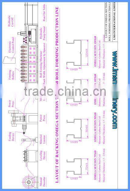 The whole line is composed by decoiler, hydraulic punch press, feeding device, roll forming machine, straightening device, hydraulic cutting off, cold water recycling device, pneumatic and electric control system, etc.