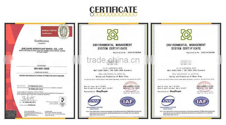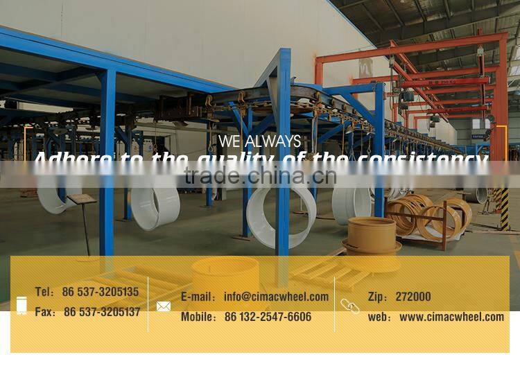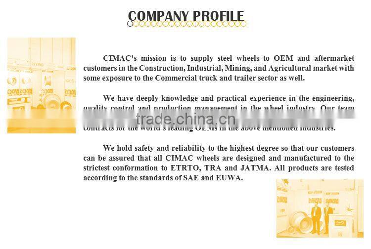 CIMAC’s single piece and multi piece series wheel for construction industries fully utilize high strength low alloy (HSLA) steel. Heat treatment formed material is used for critical components on multi piece wheel. Auto butt-welding is widely used on rim, ring and other circular parts; All circumferential weld seams are inspected by nondestructive inspection to ensure zero defect.