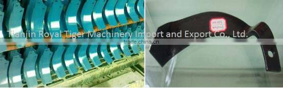 Rotary cultivator blades also manufactured by ourselves. High quality alloy 60Si2Mn, excellent cutting effect and long service life.