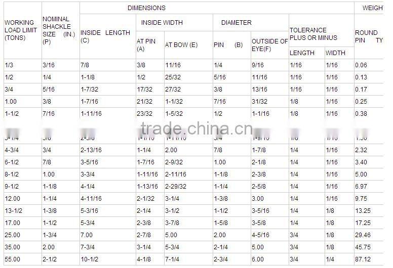 6. Stainless steel (SUS-304 or 316) shachle for these sizes as listed below aslo available.