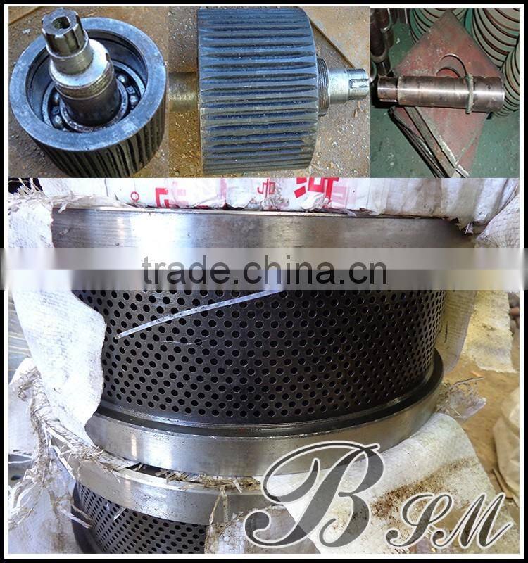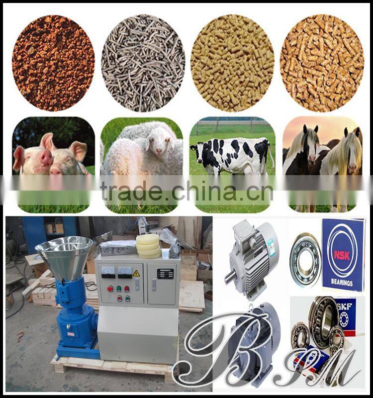 1.BSM brand ring die animal feed pellet machine/feed pellet mill can make the pellets by shaft driving and high-technology, working without water, and belongs to dry-input, dry-output.