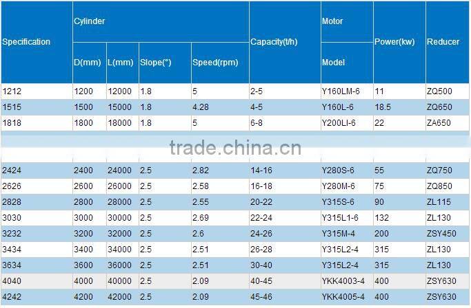 Technical Parameters of silica sand Rotary Dryer: