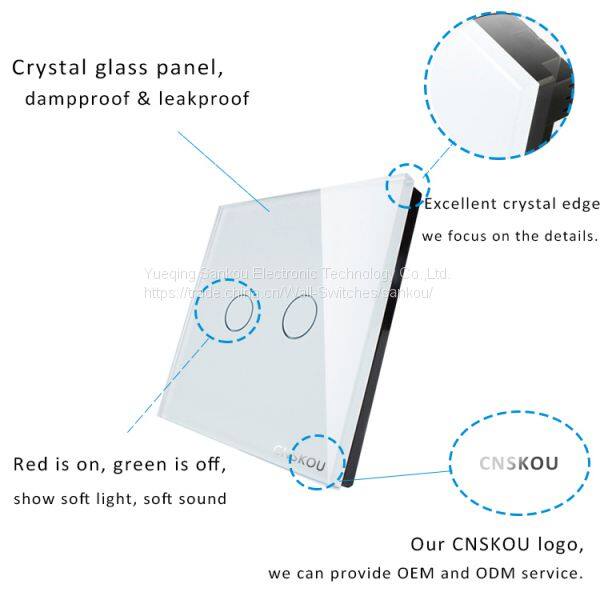 Cnskou 2017 New Design EU Luxury Glass Panel 2gang1way Touch Switch for Lamp