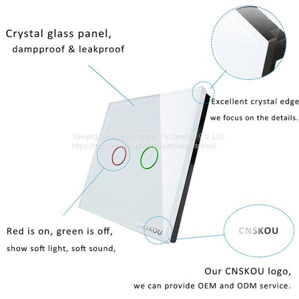 Cnskou 2017 New Design EU Luxury Glass Panel 2gang1way Touch Switch for Lamp