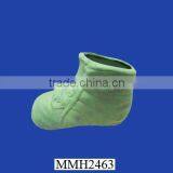 Green Handmade Ceramic Novelty Baby Shoe Planter