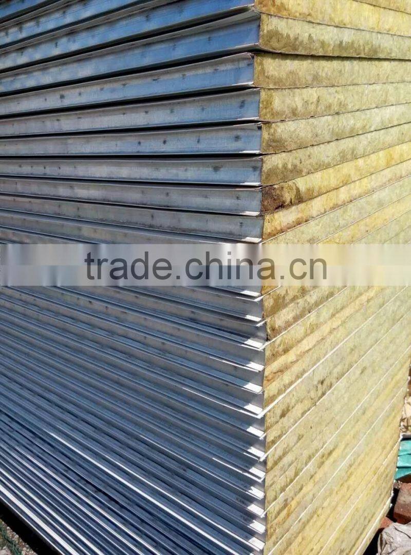 2.Rock wool sandwich panel: thickness is 50mm, 75mm, 100mm. Rock wool volume weight is 200-400Kg /m3, fire-proof, sound-insulation, heat-preservation.