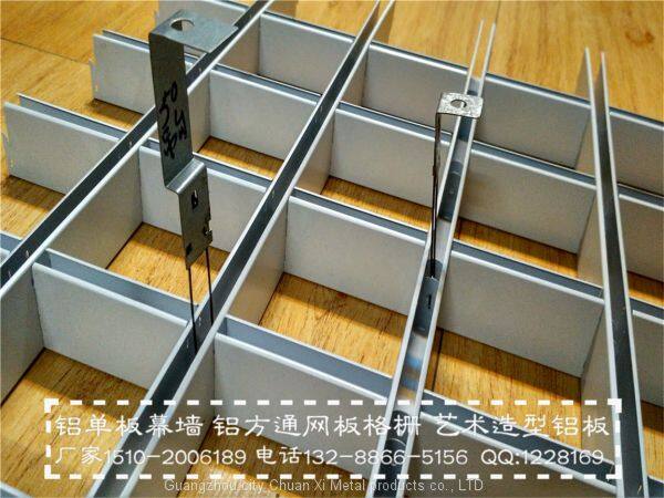 Grille ceiling combination of flexible: aluminum grille and aluminum frame combination, after installation, more unique design, modeling novel features, grille ceiling and bones of the top of the inside of the fold to enhance the firmness of the firm, the main bone and vice Bones can be pruned to match the requirements of different venues, pruned bone can still be used in conjunction with each other, the main bone and vice bone port structure elegant, so that the seamless connection of the bones.