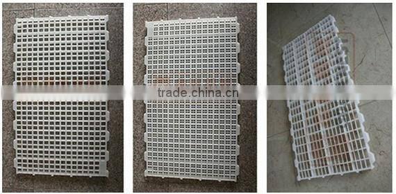 The plastic slat floor with the formula is reasonable, the craft is advanced, easy to forming and molding shrinkage rate is low, high dimensional accuracy, processing performance is good wait for a characteristic, make its products have good electrical insulation, flame retardancy and mechanical strength, good heat preservation, heat dissipation performance and can be applied to all kinds of disinfection work and light weight, level off is smooth, no corrosion, no aging, it does not hurt the foot, it does not hurt teats, easy installation, and is equipped with antiskid layer, the advantages of cheap, is the most ideal leak floor pig in the future.