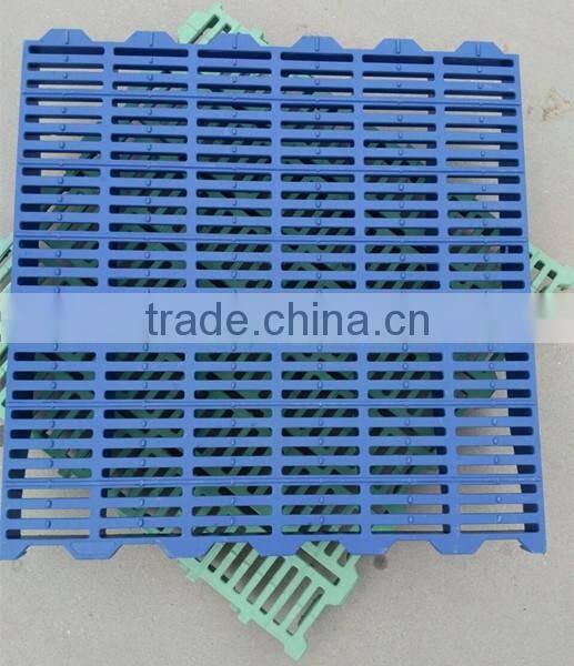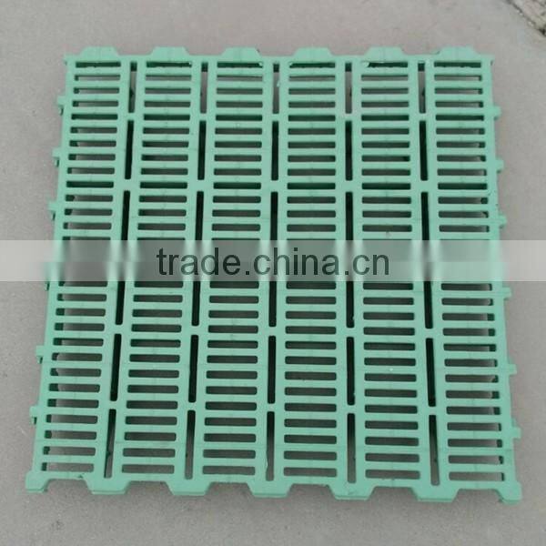 The plastic slat floor based on unsaturated resin as matrix, light calcium carbonate as fillers, such as glass fiber reinforced, and a variety of additives and pigment such as uniform mixture of new synthetic material, which is 350 tons and 500 tons of pressure pattern in forming, because the formula is reasonable, the craft is advanced, easy to forming and molding shrinkage rate is low, high dimensional accuracy, processing performance is good wait for a characteristic, make its products have good electrical insulation, flame retardancy and mechanical strength, good heat preservation, heat dissipation performance and can be applied to all kinds of disinfection work and light weight, level off is smooth, no corrosion, no aging, it does not hurt the foot, it does not hurt teats, easy installation, and is equipped with antiskid layer, the advantages of cheap, is the most ideal leak floor pig in the future.