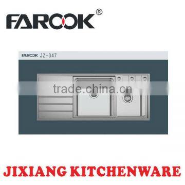 Stainless steel kitchen single sink with draining board