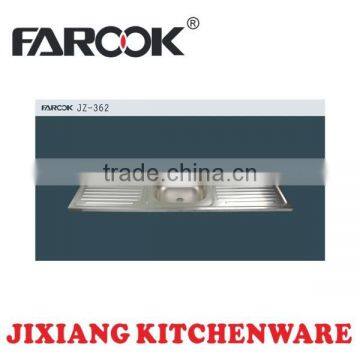 JZ-362 Cheap 1.5m Double Drain Board Single Bowl Stainless Steel Kitchen Sink