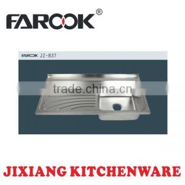 JZ-837 Single Bowl Stainless Steel Kitchen Sink With Drain Board