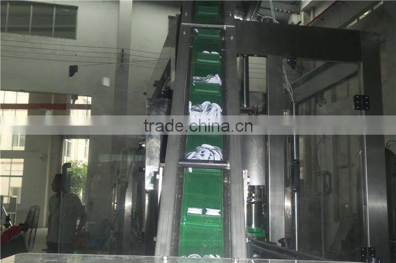 2.The speed of filling is fast and the liquid amount is controlled accurately.The filling device can be stopped automatically when there is on bottle or bottles are damaged.Pneumatic valve and damped gears are used for bottle conveying,the noise is low and the whole machine runs smoothly.