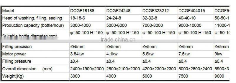 1.This kind of Carbonated Soft Drink Filling Machine/Soda Water Machine combines washing,filling and rotary capping functions in one unit.It is a fully automatic and high efficiency liquid packing equipment.