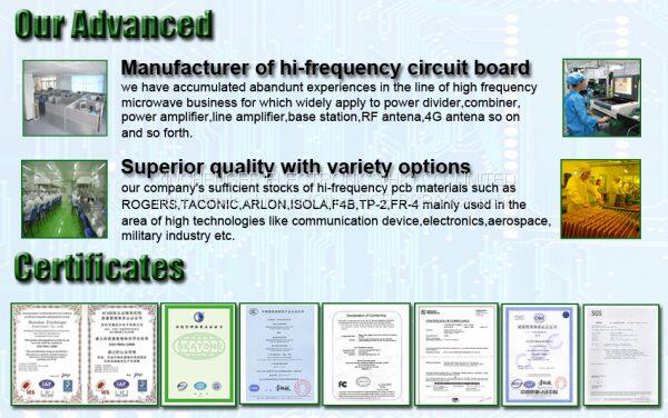 High frequency pcb high-performance insulating material for microwave, radio frequency (RF) and high-speed digital signal processing (DSP) market with PTFE/type woven glass fiber fabric sheet.This material can be applied to LNAs LNBs, PCS/PCN antenna system, global positioning system (GPS) and UMTS antenna system,And the power amplifier, passive components, collision avoidance radar system, aviation help guide remote control technology and system of the phased array radar.