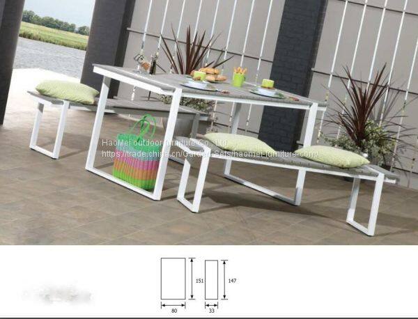 Garden Furniture Bench Chair And Table Aluminum Frame Plastic Wood