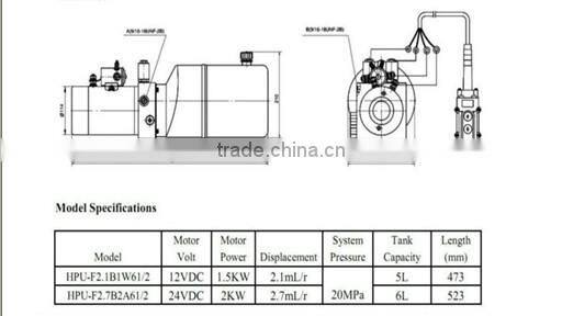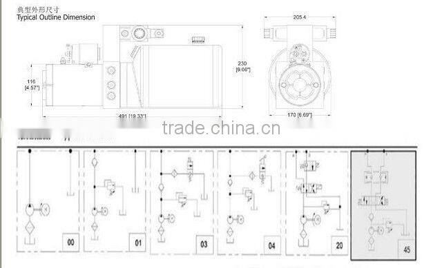 Typical circuits and outline dimensions for 12v dc hydraulic power unit