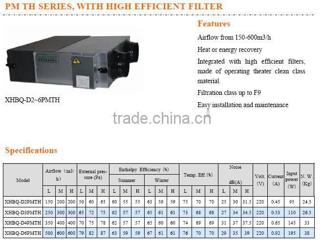 TH series is equipped with crossflow heat exchangers, the airflow ranges from 150-1300cmh, with features of silent operation and cost effective.