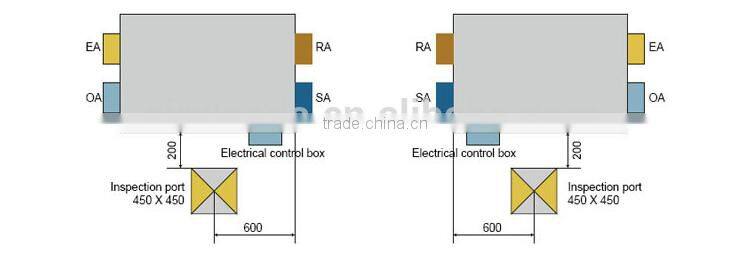 The unit can be installed either horizontally or upside down in accordance with the conditions of location. A 450mm square inspection port enables filters and heat exchangers maintenance to be performed with ease.