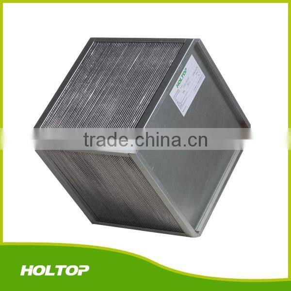 Holtop energy recovery ventilator TP series is equipped with high efficiency counter flow plate total heat exchanger. It is made of ER paper which is featured by high moisture permeability, good air tightness, excellent tear resistance, and aging resistance. The clearance between the fibers is very small, so only the moisture molecules of small diameter can go through, the odor molecules of larger diameter are unable to pass through it. By this means, the temperature and humidity can be recovered smoothly, and prevent the pollutants infiltrating to the fresh air.