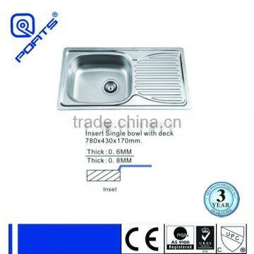 780x430 single bowl stainless steel kitchen with drainboard, PS-375,Insert Single bowl with deck.