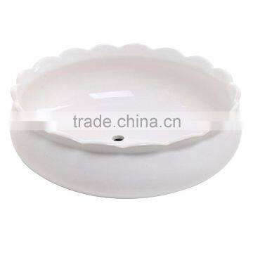 7 Inch Round Ceramic Flower Succulent Planter Pot With Scalloped Edge, White
