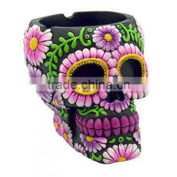 Personalized Handmade Color Painted Decorative Skull Polyresin Ashtray