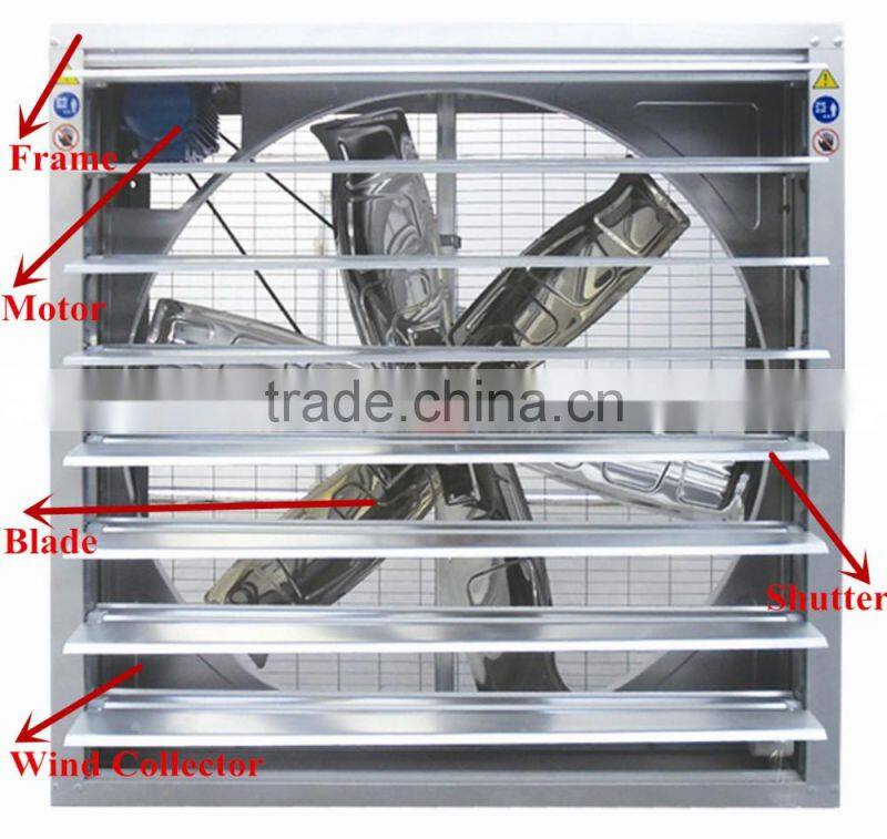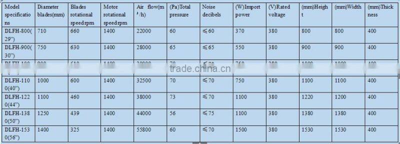 Dalifang series High class fan us naubky made up of blade,motor,outer frame protecting nets,supporting frames,shutters.It is made based on aerodynamic,effectively reduce the wind resistance.The major parts are made of galvanized steel sheets and stainless steel sheets.All the products are widely used in various types of farms,greenhouses,factory building.