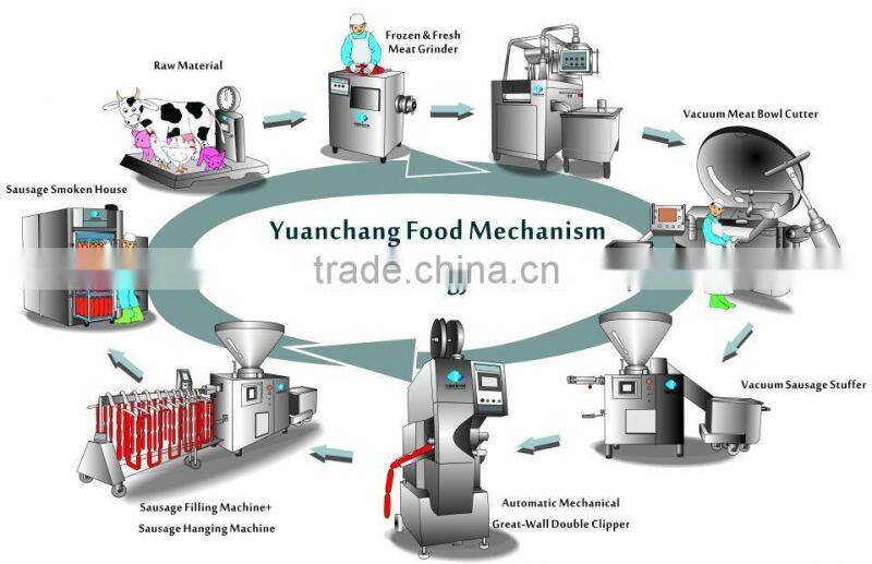 Machines we offer: frozen meat slicer, frozen meat block cutter, meat dicing machine, meat grinder, meat tumbler, saline injector, diced meat mixer, vacuum bowl cutter, vacuum filler, automatic double clipper, sausage hanging machine, smoking oven, rib cutting machine, active and tenderizing machine, high speed twisiting machine, sausage link cutting machine, double channel sausage binding machine, sausage slicer,slicing and shredding machine, band saw machine, additives preparatory maker, mannul clipper, elevator, hopper trolley and so on.