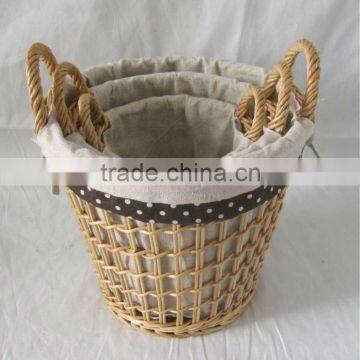 1,material:wllow basket withhandle and fabric, three to a set,new love pattern can be allowed on rhe basket