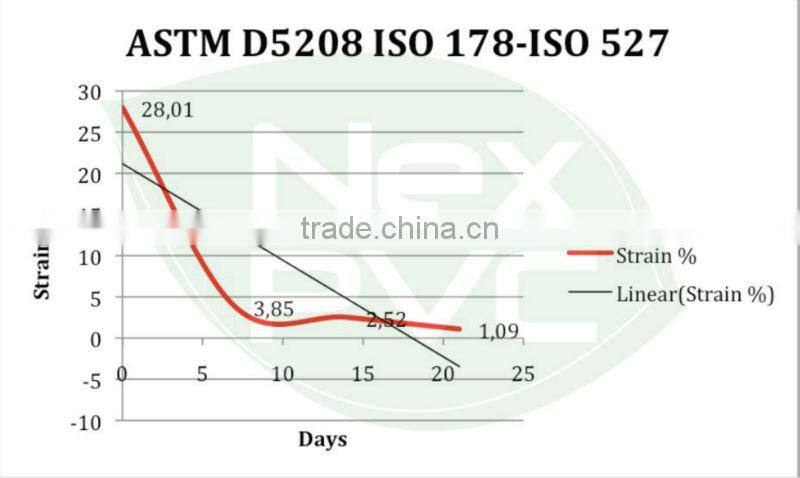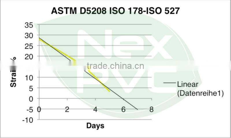 * The accelerated oven test acc. ASTM D3826 (D5510) shows that NexPVC® will degrade under aerobe landfill conditions in ca. 1, 6 – 2, 4 Years.