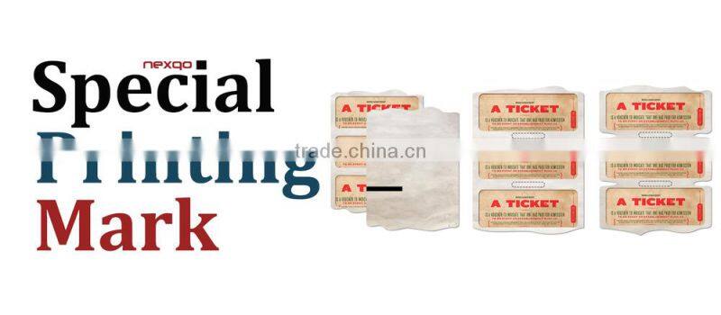It is necessary and effective to do black marks, sensing slots or notches on fan folded tickets or roll tickets when printing blank tickets where there is no contrast between a ticket and another one. Nexqo does offer printing mark on clear tickets to provide a substantial print area and smart contrast to divide your fan folded tickets or roll tickets without liner marks or holes. We can add this to any clear ticket material.