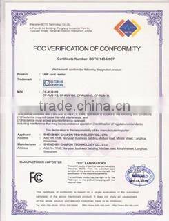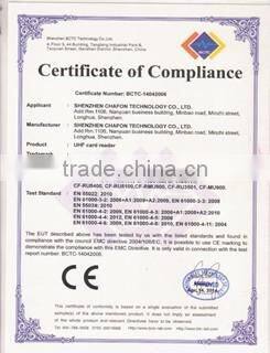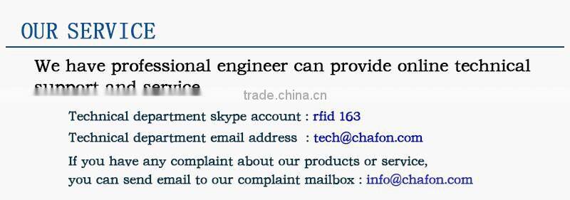 Shenzhen Chafon Technology Co, Ltd. was founded in 2009,we are specialized in RFID products research and develop,and automatic identification technology application and promotion.Company products have won the United States FCC certification,European CE/ETSI certification, and China will WuWei CMII certification which products is exported globally.