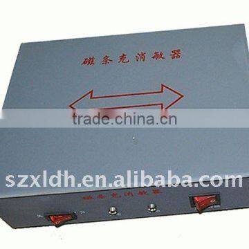 Magnetic charger and eraser is a device for magnetic charge and erase of magnetic strips of the composite strips used by libraries and bookstores.