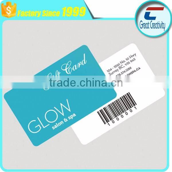 CMYK Printing PVC Barcode Gift Membership Cards with Glossy Finish