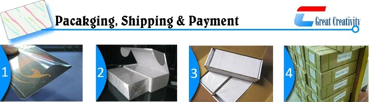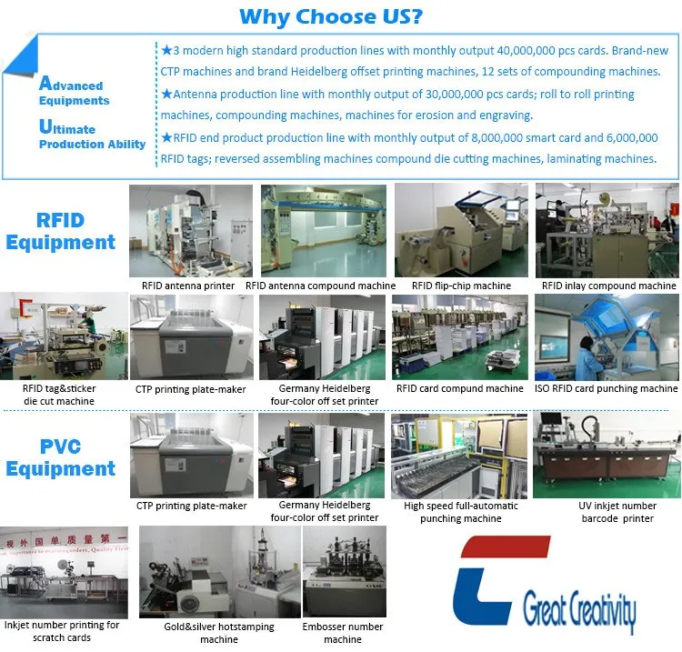 A: We deal in plastic card since 1999, with professional experience and will give you professional suggestions to make your card perfect. 100% new plastic material to ensure printing quality with certificates ISO9001 and EN71. Perfect color with our world best Germany Heidelberg offset printing machine. Fast delivery with our full automatic pouching machines. Clear barcode, QR code, different name, number printing. Long color life time with double sides thermal overlay or protective film.
