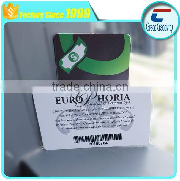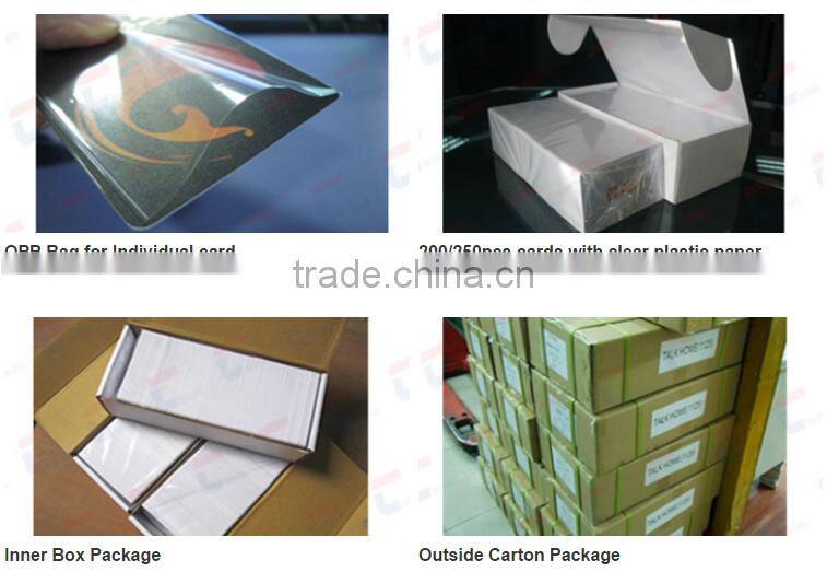 A: We deal in plastic card since 1999, with professional experience and will give you professional suggestions to make your card perfect. 100% new plastic material to ensure printing quality with certificates ISO9001 and EN71. Perfect color with our world best Germany Heidelberg offset printing machine. Fast delivery with our full automatic pouching machines. Clear barcode, QR code, different name, number printing. Long color life time with double sides thermal overlay or protective film.