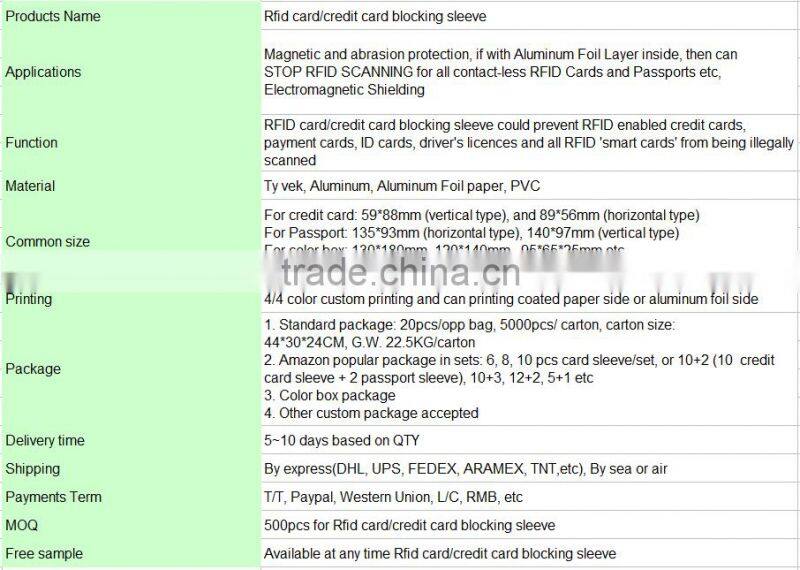 Custom Logo Printing Anti-theft Rfid Shield Card Sleeves Passport Protector