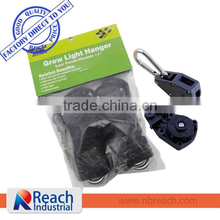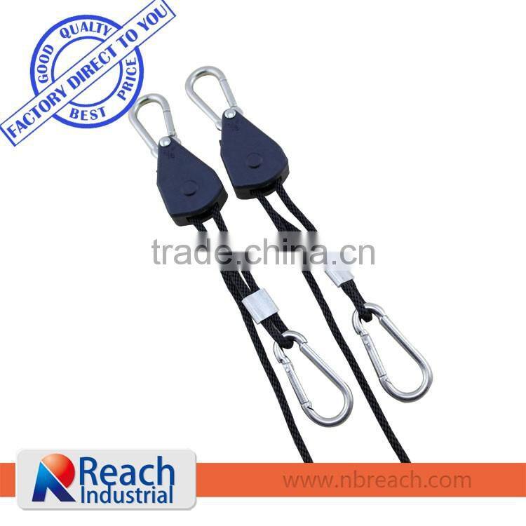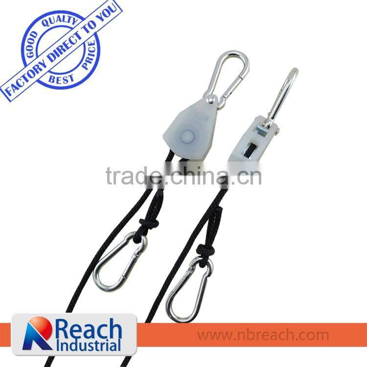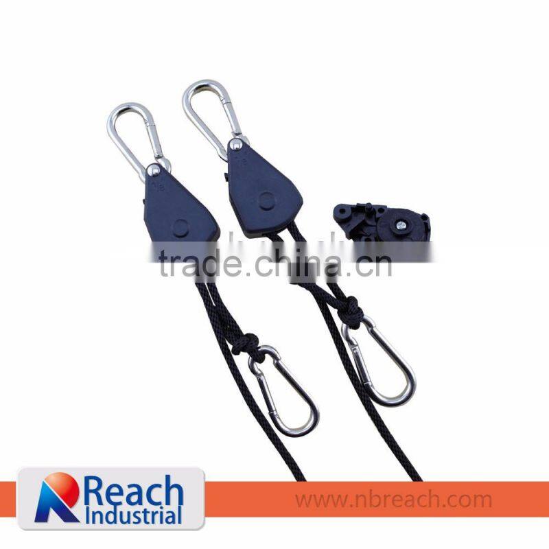 We have 1/8, 1/4, 3/8 and 1/2 inch rope ratchet for your option. It is very easy and convinience to be used for fixing,hanging or securing work.For the length and body color we can offer according to customer's requirements.