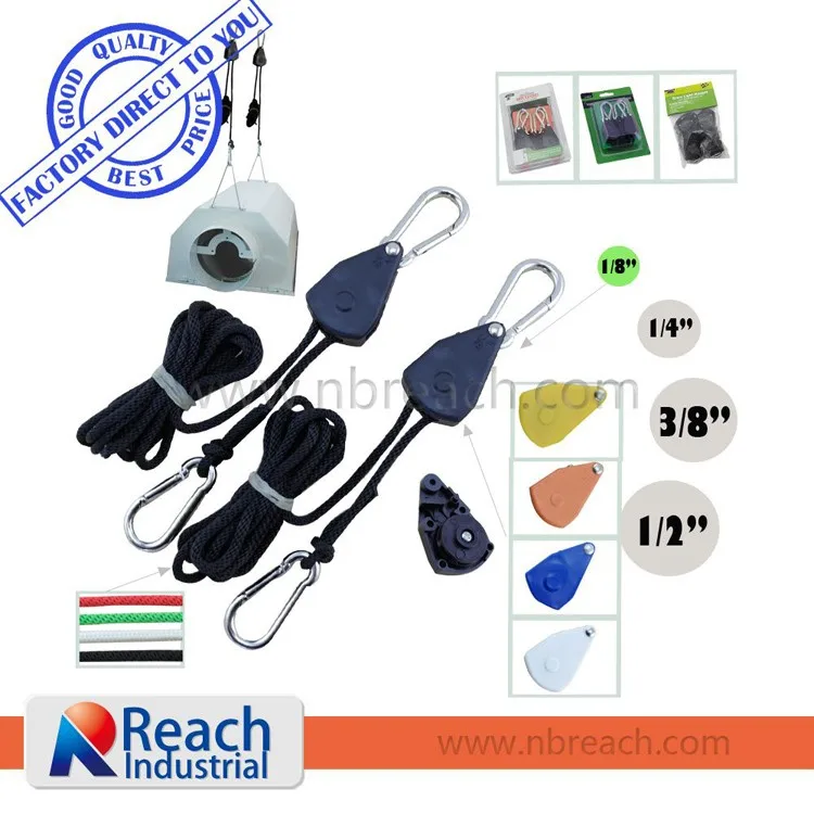 •1/8” rope ratchet light are excellent for hanging reflectors, light fixtures, carbon filter, ventilation equipment and much more.