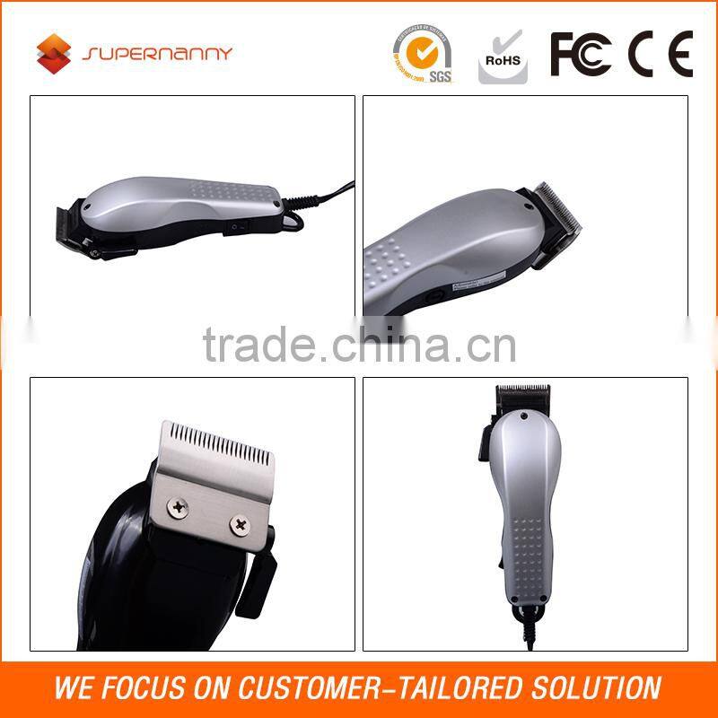 Supernanny professional men hair clipper include two main types. rechargeable hair clipper and corded hair clipper. The corded one is traditional and well accepted by many reminiscent barbers .It is not as convenient as the cordless, but extremely thin blade can make a close contact with skin, and easily shave the short hairs. It is the best choice for barber and salon. And the rechargeable hair clipper have different designs, with kit, LED indicator. The innovative cutting element and adjustable combs are designed to give you a fast, sharp cut, and own a fresh look each and every time. Whatever look you want to achieve, our hair clipper will let it come true.