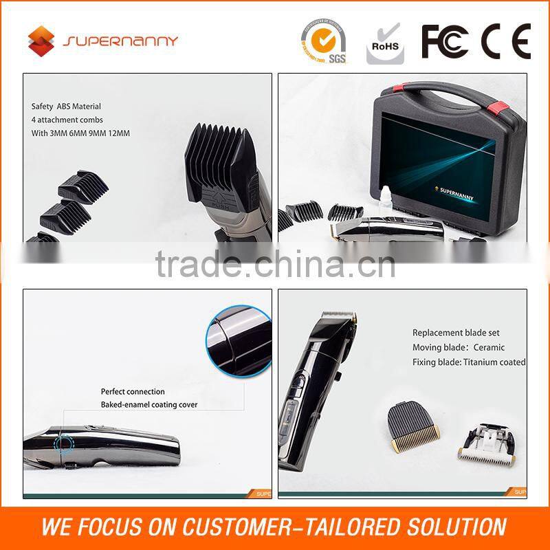 Supernanny professional men hair clipper include two main types. rechargeable hair clipper and corded hair clipper. The corded one is traditional and well accepted by many reminiscent barbers .It is not as convenient as the cordless, but extremely thin blade can make a close contact with skin, and easily shave the short hairs. It is the best choice for barber and salon. And the rechargeable hair clipper have different designs, with kit, LED indicator. The innovative cutting element and adjustable combs are designed to give you a fast, sharp cut, and own a fresh look each and every time. Whatever look you want to achieve, our hair clipper will let it come true.
