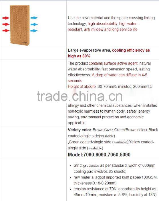 Pengsheng cooling pad is made of corrugated fiber paper which is covered by thin layer water film. When the outside hot air passes through the paper, water on the thin film will absorb the heat in the air and evaporate into vapor. And the cool and humid air will enter the room. The processing is just like the wind blowing through the water level.