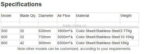 1. Fairshaped and circular appearance, can guarantee the fan body strength and reduce the wind pressure.