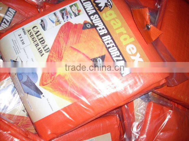 | Finishing Treatment | 1) All edges with PP rope in hem ; 2) Four corners reinforcement ; 3) Rustproof Aluminum eyelets in 1m (1 yard or 3 feet) interval ; 4)Four corners reinforced by plastic triangle (100g/m2 - 260g/m2) 5)Each pc tarpaulin folded into a transparent polybag with color label (Customer's design) |